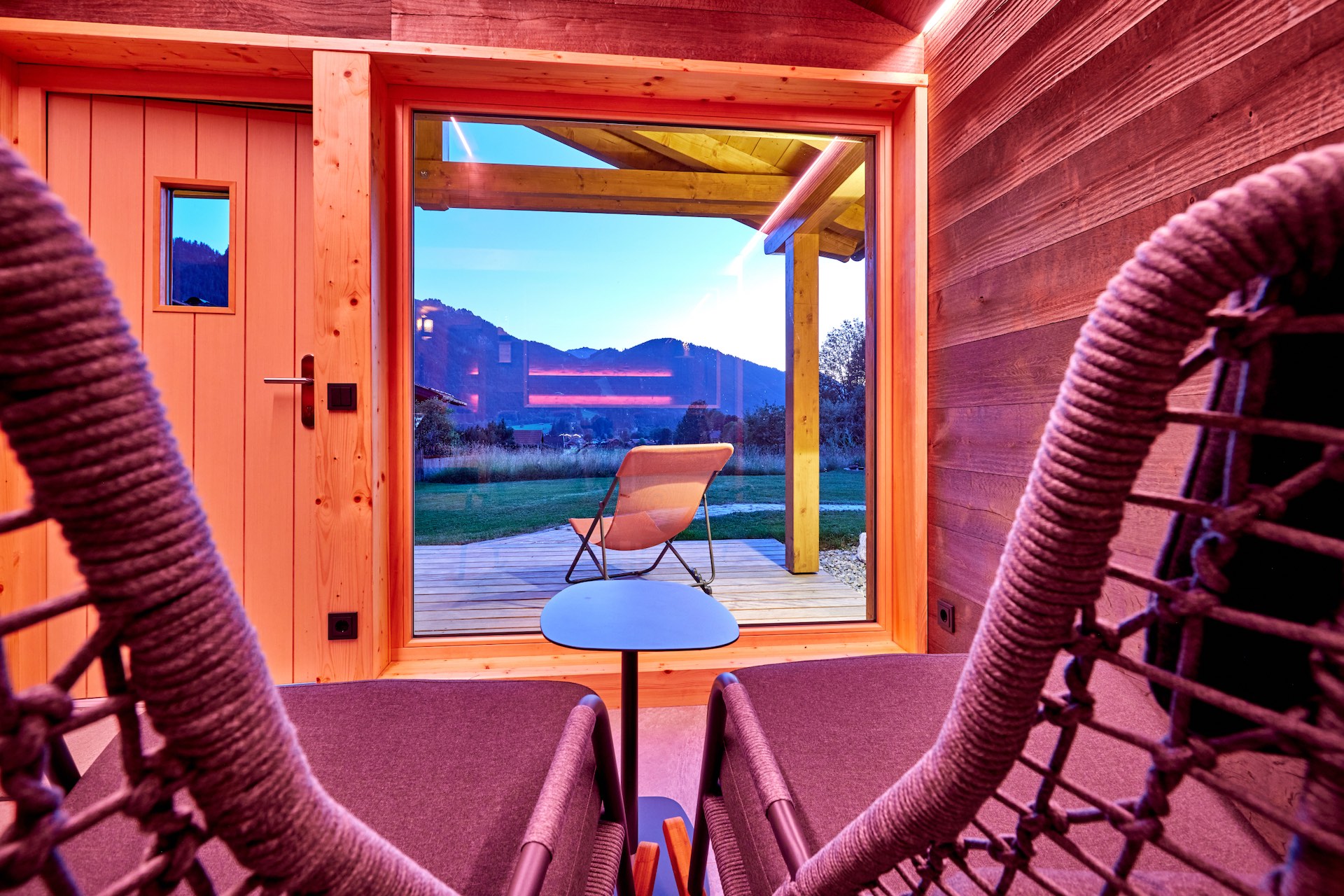 Genießen sie von unseren Balkonen den herrlichen Blick auf die Ammergauer Bergwelt und entspannen sie nach einem anstrengenden Aktiv-Tag in unserem Wellnessbereich, mit finnischer Sauna 90°C, Zirbentherme ( Infrarot) und Hot-Spring-Whirlpool.